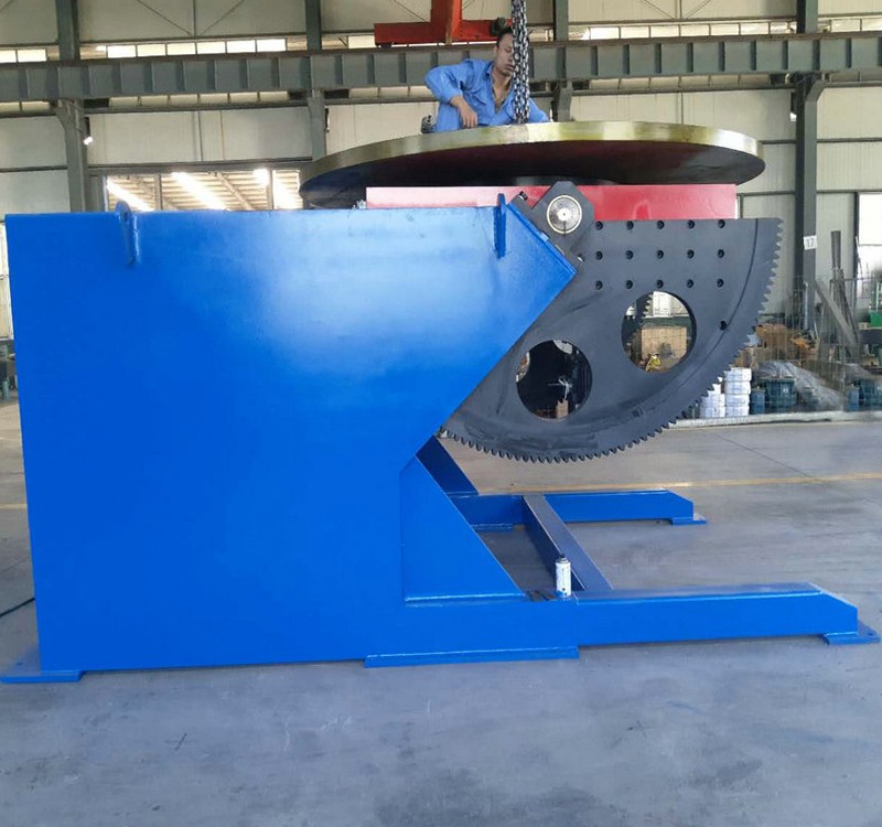 座式定位器由旋轉機構、翻轉機構、框架和電子控制系統(tǒng)組成。它通過工作臺的旋轉、翻轉使工件處于最佳的焊接或裝配位置。工作臺旋轉采用變頻無級調速,工作臺通過扇形齒輪或液壓缸驅動傾斜。工作臺的轉角為0~120。可實現(xiàn)與操作機或焊機的聯(lián)合控制。